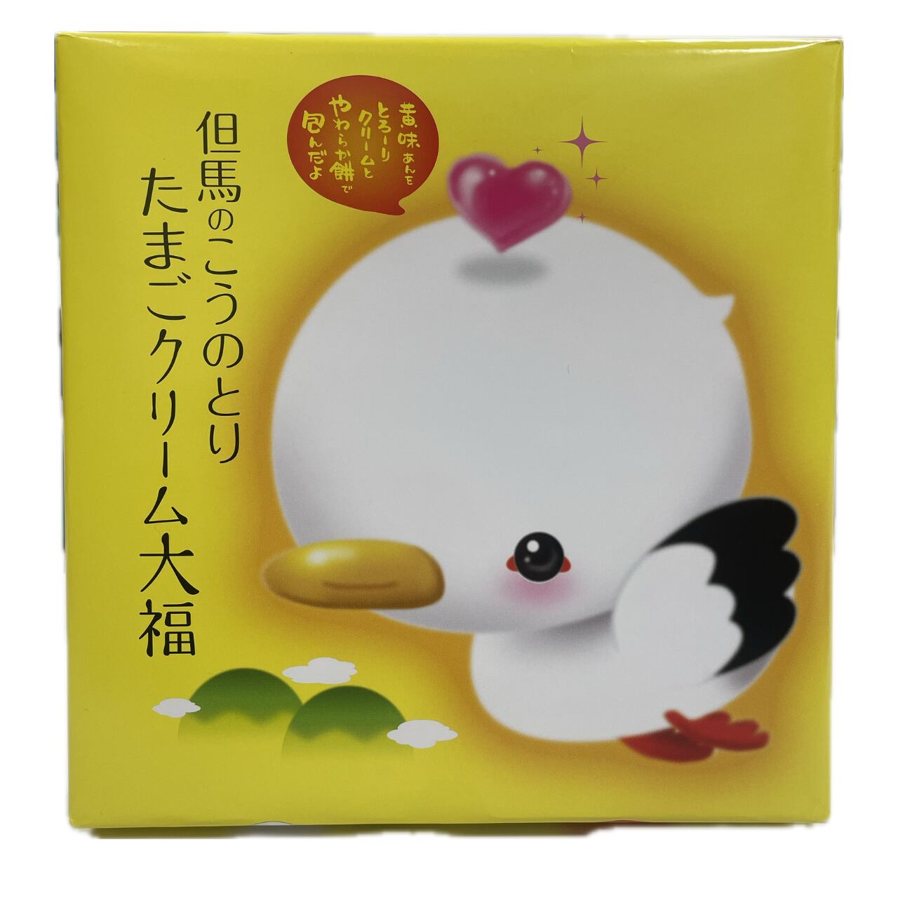 たまご餡(白生餡、グラニュー糖、還元水飴、鶏卵)(国内製造)、ホイップクリーム(植物油脂、水飴、砂糖、卵白、澱粉、加糖練乳)、水飴、砂糖、餅粉、寒天/甘味料(トレハロース、ソルビトール)、グリシン、香料、乳化剤、着色料(二酸化チタン、黄4)、酸化防止剤(ビタミンE)、pH調整剤、(一部に卵・乳成分・大豆を含む)