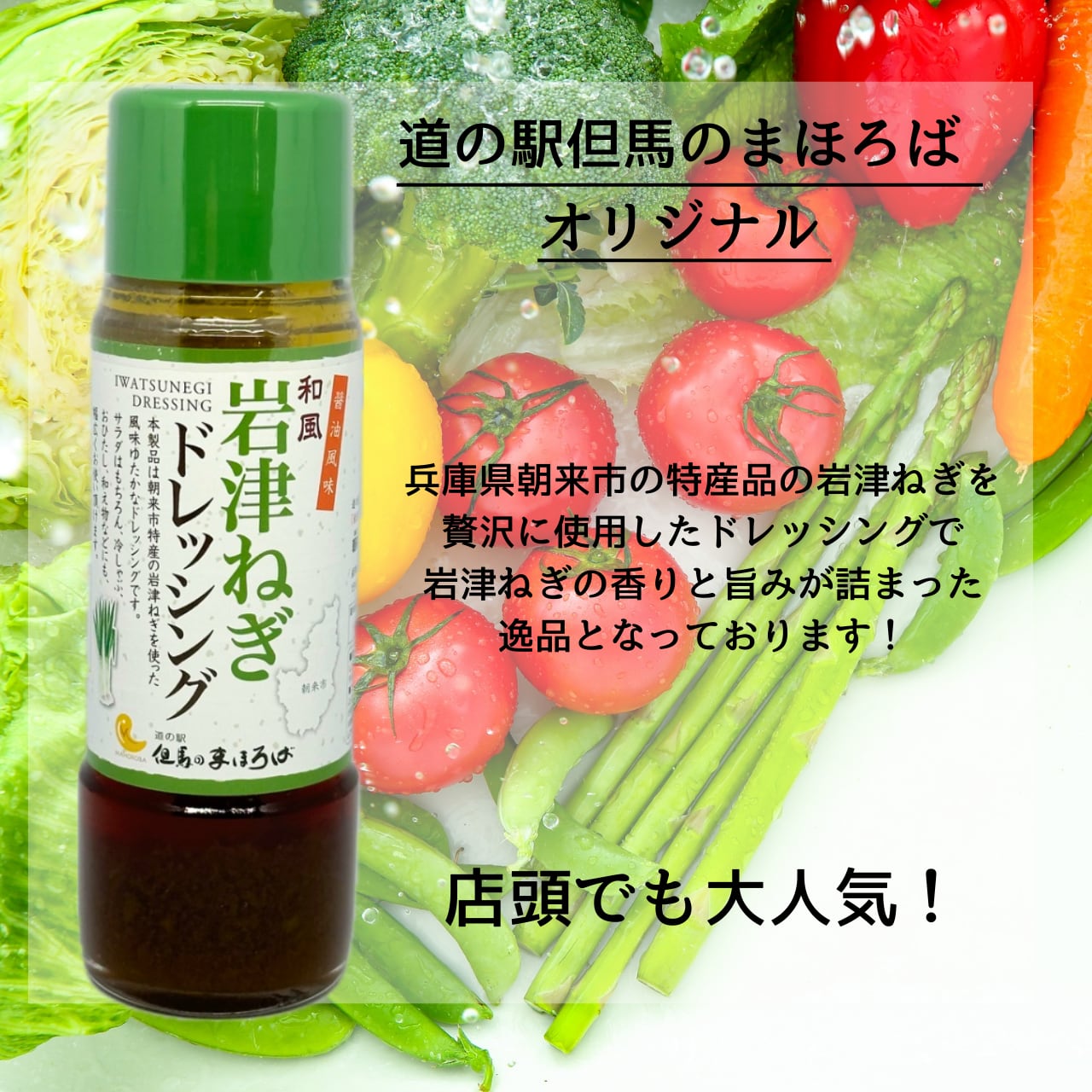 岩津ねぎの独特の香りと味わいが楽しめる醬油ベースの和風ドレッシングは、サラダはもちろんのこと、冷奴や冷しゃぶ、おひたしとも相性抜群‼